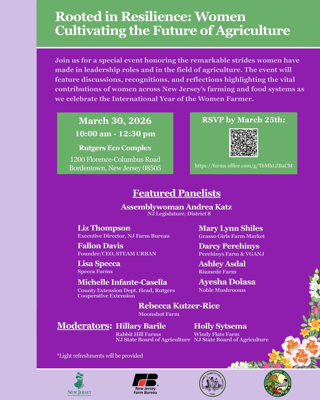 Join us Monday, March 30 2026 at the Rutgers EcoComplex for a powerful morning honoring the leadership, innovation, and impact of women across New Jersey Agriculture.