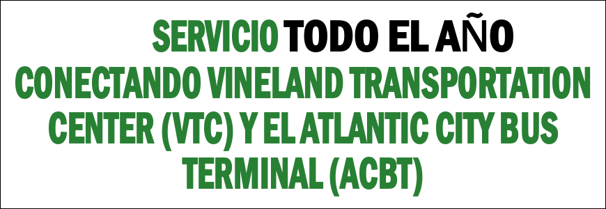 Public transportation options include the NJ Transit Atlantic City Rail Line, free Rail Terminal Jitney Shuttle, Express Bus Service, and the Vineland Commuter Express.