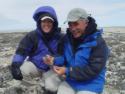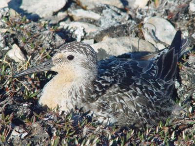 If you go to the Arctic you can expect to enjoy an adventure from beginning to end. Nancy, Steve and I separated from the rest of the team and stayed the night in Coral Harbour. We expected a simple transition from field to town and looked forward to a shower and a night in bed. But our trip to Coral Harbour brought much more. Our flight out of camp went without a hitch. Ed brought the Cessna Caravan airplane down at about the time we had broken camp. We left it with a mix of anticipation for the comforts of home and the joy of seeing loved ones, and with the sadness of leaving our wilderness home. The last few days were as close to perfect as one can find on the tundra, sunny and warm, with light winds and still no mosquitoes. All of the birds, the individuals we had come to know in our many walks and nest checks, were well into nesting, some not far from hatching. The land spoke with the voice of all their calls, from the frog-like call of the dunlin and laughter of the knot in its flutter flight, to the mechanical all-business call of the ptarmigan. The land assumed a peaceful state from which sprung a simple community that anyone could feel as home. At Coral Harbour, the Inuit village on Southampton Island, we checked into our hotel for the night. Leonie's Place is a hotel/bed and breakfast that seemed a perfect transition into our normal lives. Leonie and her husband, Ron, have made a place to stay that is a perfect mix of the privacy of a hotel with the hospitality of a bed and breakfast. Leonie has vast experience in the business and government in Nunavut. Both of her sisters hold prominent positions in the Nunavut provincial government. We listened with interest, as she spoke of the practical difficulties encountered by the newly formed Inuit government and of running a business. We were treated to a tour of the land surrounding Coral Harbour. Norman and his wife, Louisa, along with Johnny and his wife, Elizabeth, took us to see Kirshoffer Falls and the new bridge that opened access into a large area of the coast and coastal tundra south of town. After spending weeks in the gentle, barren, ground tundra of the interior, we were struck by the awesome power of tons of water crashing into a river canyon filled with life. The road south of the falls brought us to lovely overlooks of the coast and low hills of the coastal tundra. The next day brought airline scheduling and ATV payment problems that Nancy, with the help of Leonie, Cam at the Northern Store, and Mark Holm at Skyward Aviation helped to resolve. Before long, we rejoined our team and plunged back into our normal lives. Our expedition ended with several important accomplishments that will set the foundation for the next five years of study. For three years we have been conducting fieldwork in an attempt to develop a method for assessing Arctic breeding success and relate it to our work on the Delaware Bay. Our first two years, we explored the tundra finding where the birds nested and sufficient nests to study. We were able to characterize the forces that effect nesting, create a study, etc. We found knots and sanderlings that had been banded on the Delaware Bay (including one knot found this year that was banded in NJ in 2001) proving the connection with the Delaware Bay. This year, for the first time, we found all the nests of all species within a defined study area using state of the art GIS equipment. We conducted several types of surveys that would best index our known population of nests in the same way that a pollster uses a sample of people to assess national opinion. With this format, we could survey the entire Arctic red knot breeding area. This was our original goal, which was to define the area where red knots breed then conduct yearly surveys to determine trends. This data, along with data from the South American surveys and weight and number surveys on the Delaware Bay, will paint a scientifically defensible portrait of the status of red knots. Subsequently, the data will illuminate any changes in the population of red knots as they slowly adapt to the declining numbers of horseshoe crabs. Optimistically, it will also help us plot a course of recovery. As all the various agencies that influence these birds come to agree on the need for restoration, then our data from the Arctic and elsewhere will help plot the course of that recovery. We have many people to thank. First, we wish to thank Director Bob McDowell and Assistant Director Marty McHugh for supporting a NJ Division of Fish and Wildlife research project that is about as far from NJ as one can get. We are very grateful to Bill Weber and Ingrid Li of the Wildlife Conservation Society, the group who raised most of the money for this and past trips to the Arctic. Without their continuing support, we would not have been able to collect the basic data on which to base a longer-term project. In addition, this project would not be possible without the stalwart support of the Conserve Wildlife Foundation and its executive director, Linda Tesauro. We would also like to thank Cliff Day and Annette Sherer, of the NJ Field Office of the US Fish and Wildlife Service, who also supplied critical funds for this and past Arctic projects and who share our concern for this species. Thanks to Howard Schlegel, US Fish and Wildlife Service Cape May National Wildlife Refuge, for his support and assistance with our work on Delaware Bay and the Arctic. Ed Swayda and all the people at Skyward Aviation have helped us in various ways, particularly getting us in an out of our study site despite very difficult conditions. We are all very grateful to Ron Porter who has once again created a device that proved to be a success -- although we had no bears, our regular tripping of the bear fence alarm proved its functionality and worthiness. Many thanks to Scott Perelli of DEP's Financial Operations for his assistance with the project, and Scott Health and Safety of Monroe, North Carolina, 