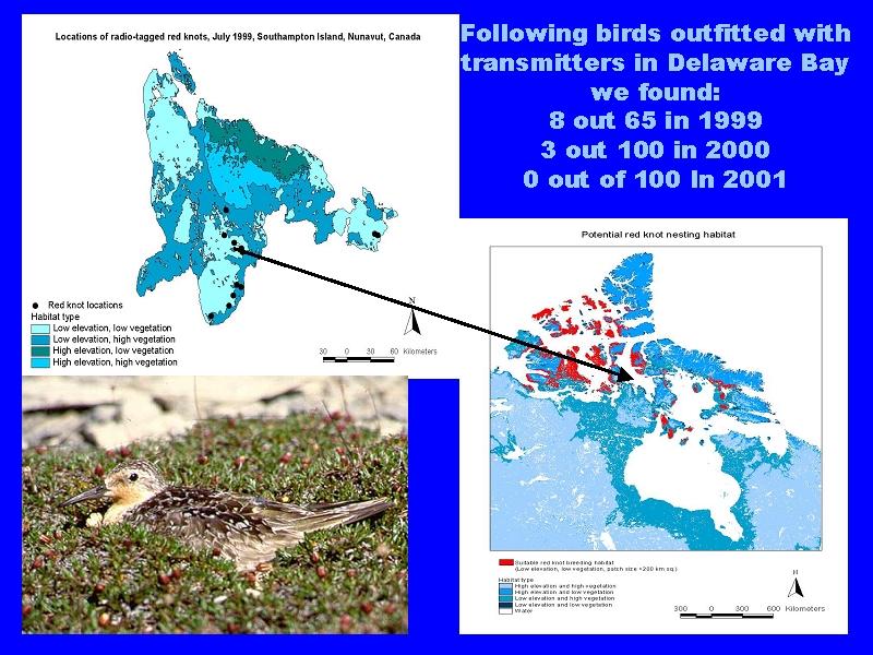 Nevertheless, in three years of study we have found a serious decline in the number of nests in our study area and a decreasing number of birds with transmitters in our Arctic-wide aerial searches. We suspected the decline in Delaware Bay horseshoe crab eggs as the cause because no other Arctic breeder declined in our study area.