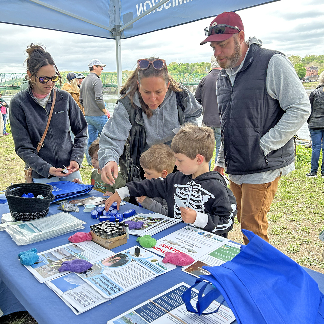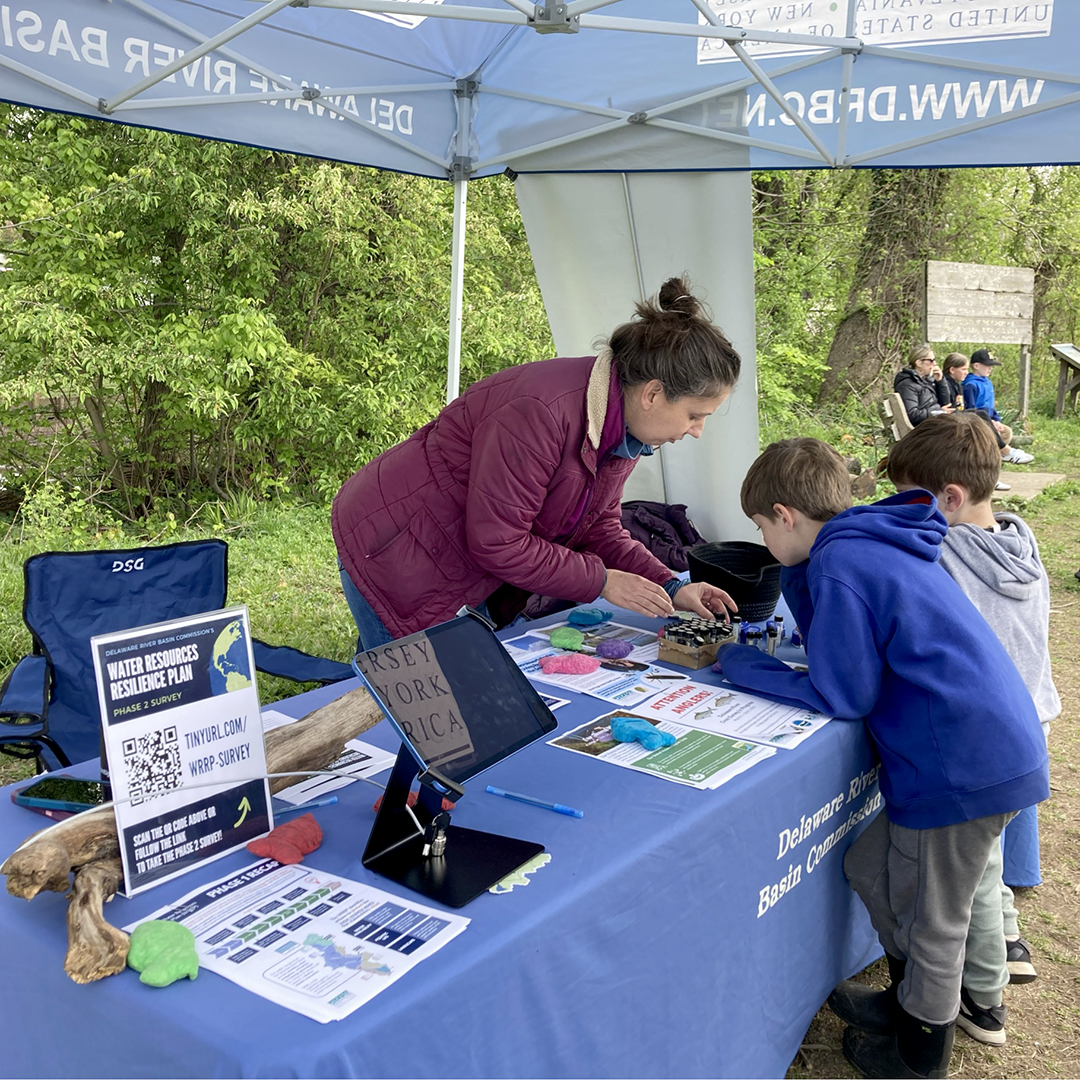 DRBC staff taught about the importance of macroinvertebrates ("macros" or aquatic insects) as indicators of water quality. Visitors of all ages had the opportunity to examine preserved specimens collected from the river by staff and learned which ones are sensitive to pollution and which ones are more pollution tolerant. Staff also had a survey for folks to complete to get their feedback about water resiliency. Shad Fest was the first public outreach event survey opportunity of many planned this spring and summer to get the public's input as part of Phase 2 of DRBC's Water Resources Resilience Plan.