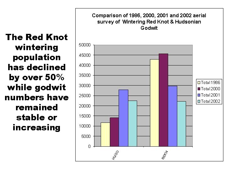 Within two years the population had declined to 22,000 birds. The steep decline was not the result of changes in Bahia Lomas because the hudsonian godwit remained relatively stable in the same surveys. Godwits feed on the same prey and breed in the Arctic, but don’t stopover on the Delaware Bay
