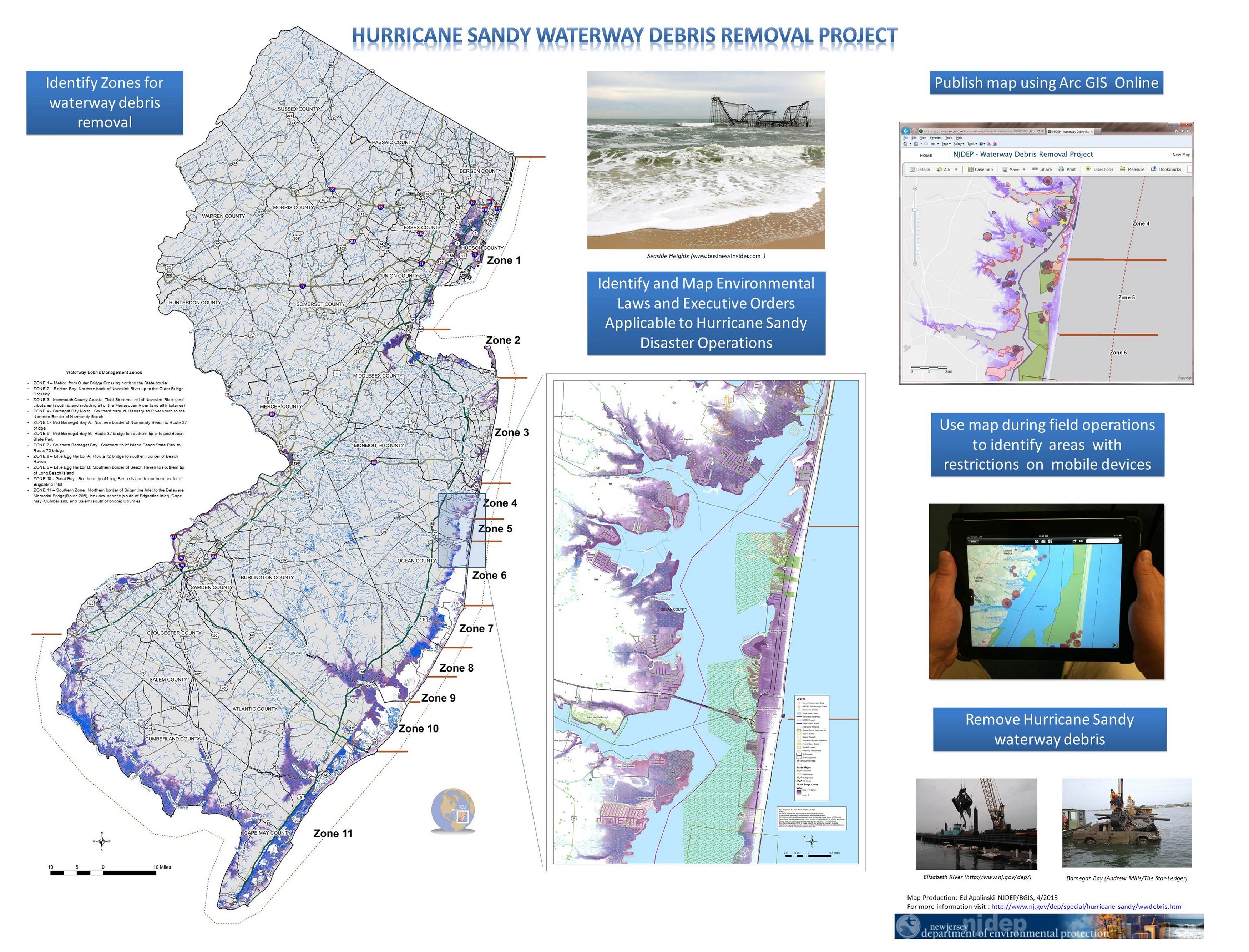 This map summarizes GIS efforts for the Hurricane Sandy Waterway Debris Removal.