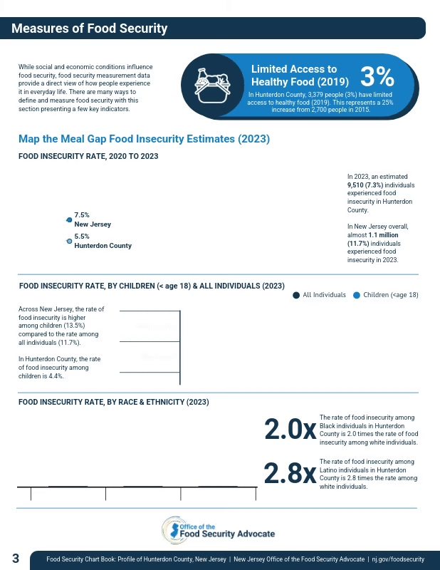 The information in this county-level chartbook leverages data in The State of Food Security in New Jersey: A Data Chart Book.