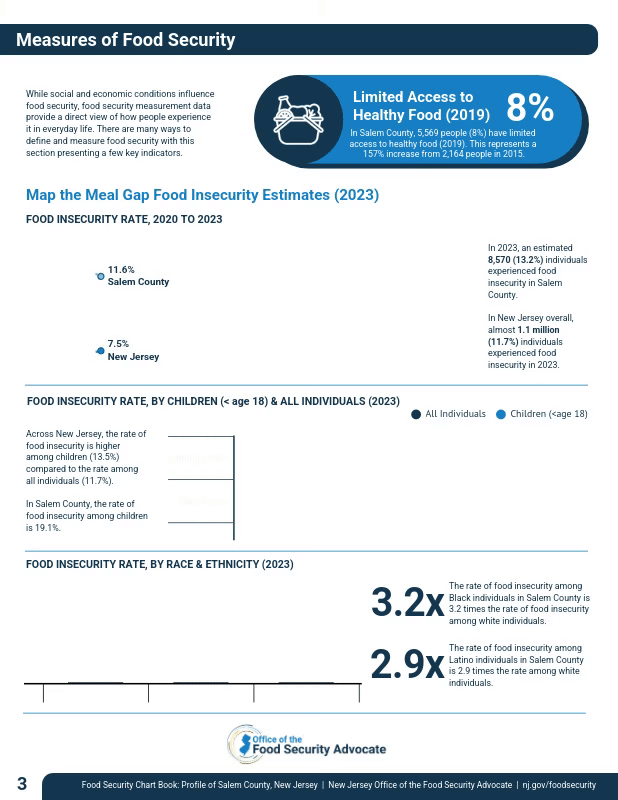 The information in this county-level chartbook leverages data in The State of Food Security in New Jersey: A Data Chart Book.