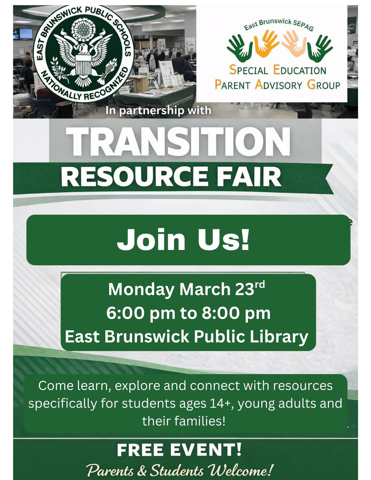 3/23/26: The EBSEPAG and East Brunswick Special Education Department Transition Resource Fair, East Brunswick, NJ