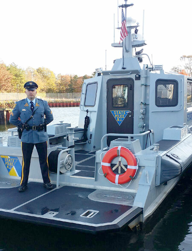 Upon arrival at the scene, Sergeant James Matier #6461 and Trooper I Christopher Menello #6740 observed an elderly female standing within chest deep water. Trooper Menello positioned the Troop Vessel alongside the victim subsequently determining that she was fatigued and hypothermic. Both Sergeant Matier and Trooper Menello grabbed hold of the victim and pulled her aboard their patrol vessel. In doing so, Sergeant Matier hyper extended his right knee resulting in injury to same. After securing the victim on board their vessel, she was supplied with an issued woolen blanket reference cold water exposure. The victim was then transported to the municipal ramp where she was greeted by EMS and subsequently transported to Brick Memorial Hospital where she was treated for cold water exposure.