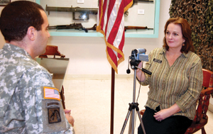 By Spc. Sherwood Goodenough, 444th Mobile Public Affairs Detachment![]() Carol Fowler, right, director, Center for U.S. War Veterans Oral Histories at the National Guard Militia Museum interviews a veteran of Operation Iraqi Freedom. (NJDMAVA photo by Kryn P. Westhoven) In the early summer of 2001, with only a borrowed camcorder and a donated VHS tape, an intern at National Guard Militia Museum of New Jersey began taping the stories of veterans. A decade and more than 400 interviews later, that internship evolved into the life's work for Carol Fowler, now the museum's assistant curator and director of its Center for U.S. War Veterans Oral Histories. The project, which began as collaboration between the Library of Congress and regional partners, collects and records stories of veterans in their own words. For Fowler, who conducts interviews from the museum's headquarters in Sea Girt, this cataloging of memories is important not only for its value to historians, it's become a way for veterans to tell personal stories that would otherwise go untold. The Middletown resident speaks in nearly breathless excitement and confesses to getting chills as she recounts the unimagined outcomes that evolved from choosing to add a human voice to nearly every conflict since WWII. "The key is to listen," she said. "It's inspiring." The project has taken her to the offices of former Gov. Brendon Byrne, where she interviewed the WWII veteran about his service as a B-17 navigator. She's formed friendships with women who were the first nurses in occupied Okinawa and a soldier who helped Marilyn Monroe take off her boots in Korea. These first-hand accounts provide an intimate human perspective that might otherwise disappear between the major headlines. Although the numbers of Iraq and Afghanistan participants are growing, the vast majority of stories come from WWII-era soldiers, Fowler said. "They're at the point where they're reflective in their senior years," she said. "Many have never talked about it before and now they feel it's time." While the interviews are simple, fluid, and conversational, they have led to unexpected reunions of old comrades, closure for bereaved loved ones and have helped in the healing process of those still suffering from the trauma of war. Bob Silverman, a retired research engineer and former Army Signal officer from Long Branch, NJ, is one of the museum's volunteer docents. He considers her work significant because of the new life it gives the legacy of those who served. "Capturing soldiers' memories for the generation that is coming to the end of their lives is important," he said. "We need to remember what they've seen and heard." Fowler began her work three months before the tragic events of Sept. 11, 2001 so as she nears the 10 year anniversary of her work she's reminded of how Maj. Gen. Maria Falca- Dodson, Commander of the NJ Air National Guard, ended her interview. "I ask at the end of each interview if the veteran has a message of peace for tomorrow's generation," Fowler said. "Some give the answer to go into the military." "Maria Falca-Dodson had a unique answer. She said nowadays you see everyone texting and emailing and we've lost that personal face-toface communication." Falca-Dodson's comments made her realize the importance of the work she does as new generations of warriors are minted daily. "The oral history project will never die and hopefully there will always be someone here to do this," Fowler said. Veterans may schedule an interview by contacting Ms. Fowler at (732) 974-5966 or visiting www.nj.gov/military/museum/oralhistory.html.