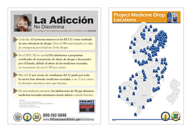 Los residentes de Nueva Jersey pueden encontrar un mapa de los 126 buzones de Project Medicine Drop en www.NJConsumerAffairs.gov/meddrop. La Division of Consumer Affairs planea instalar adicionales buzones de Project Medicine Drop a agencias que están participando en la iniciativa.